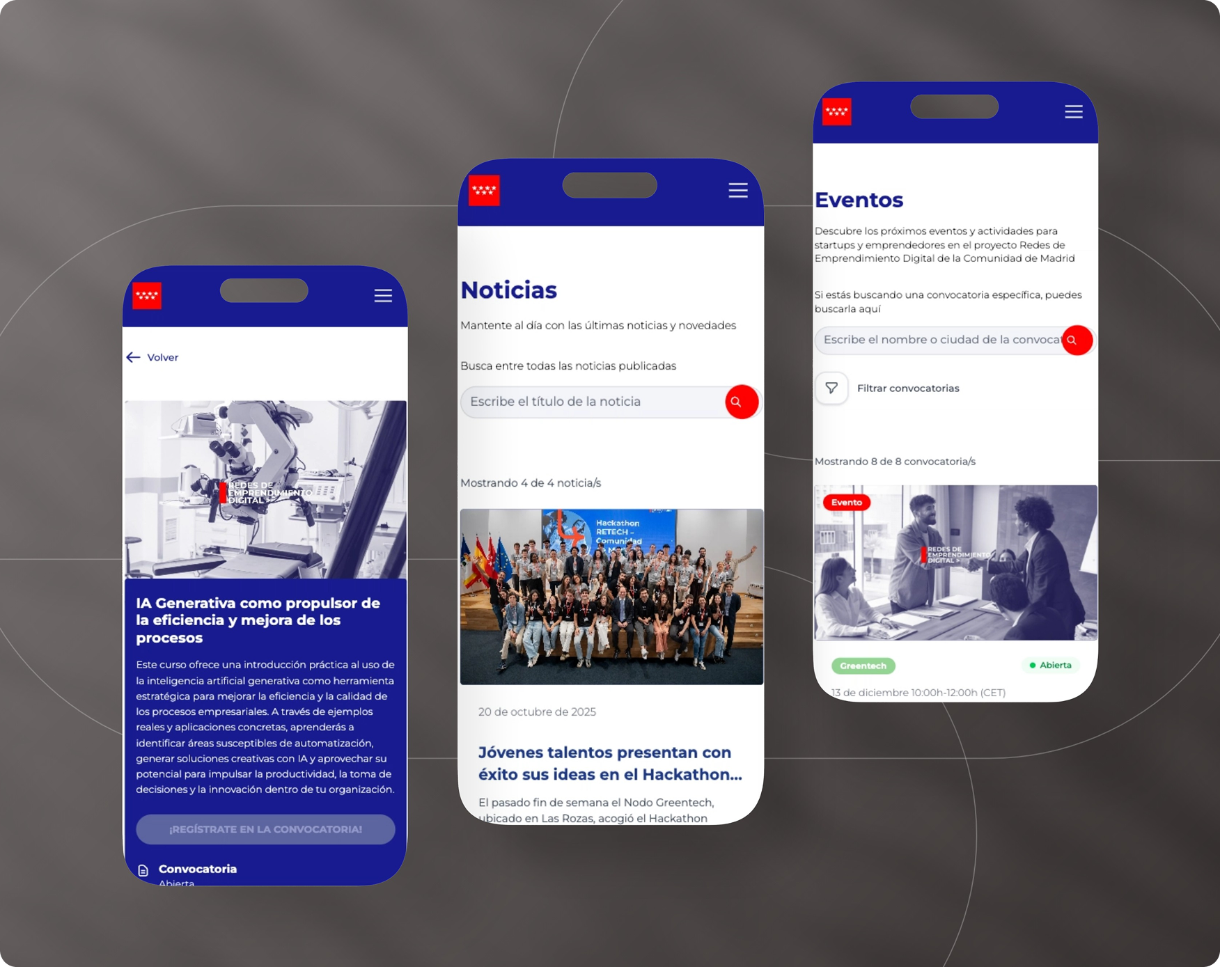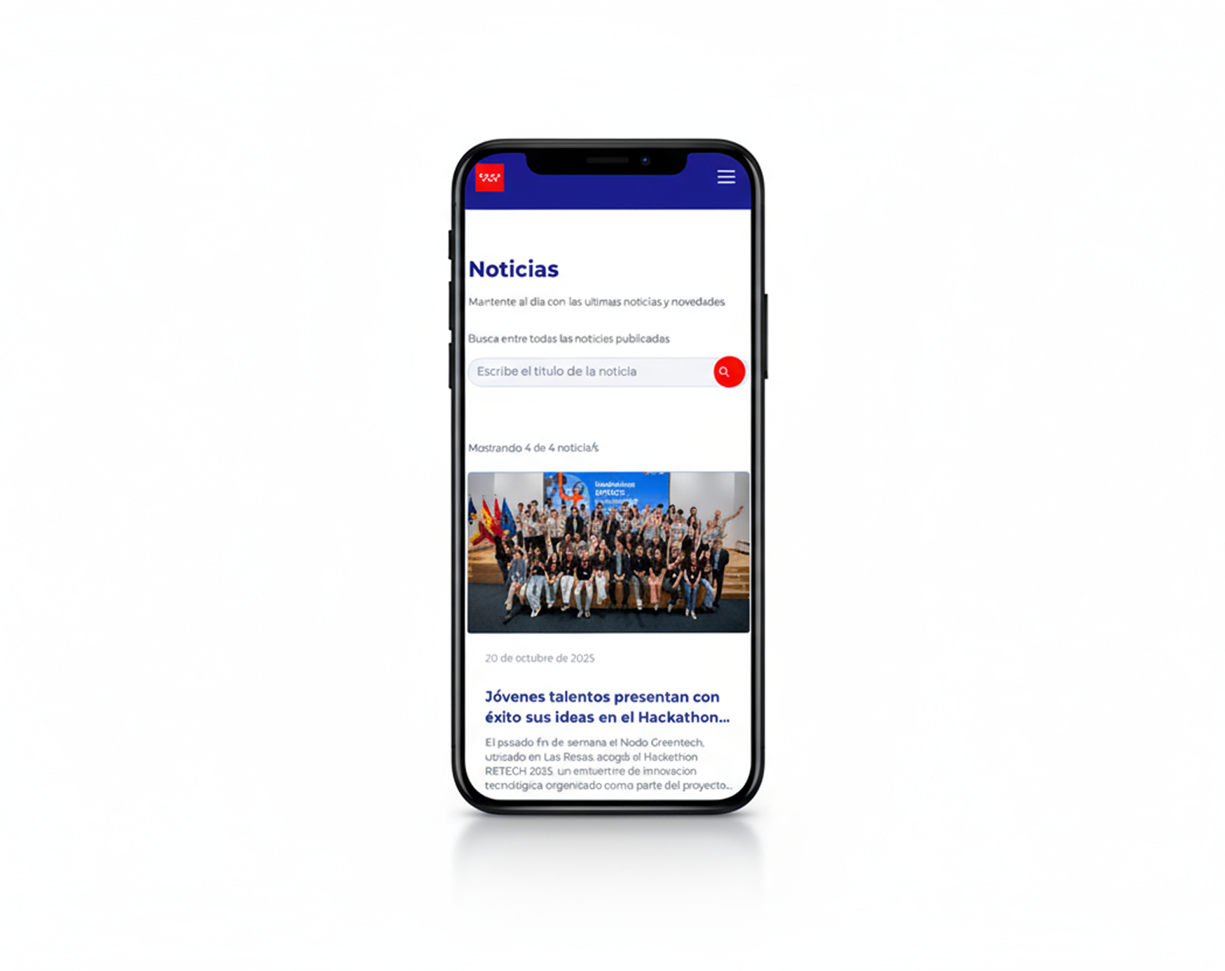 "La plataforma RETECH Madrid se desarrolló y puso en operación en menos de 8 semanas, transformando completamente la gestión de contenidos de la iniciativa. Los equipos de administración experimentaron una reducción del 60% en los tiempos de gestión de contenidos, mientras que la plataforma cumple al 100% con los estándares de accesibilidad AA.